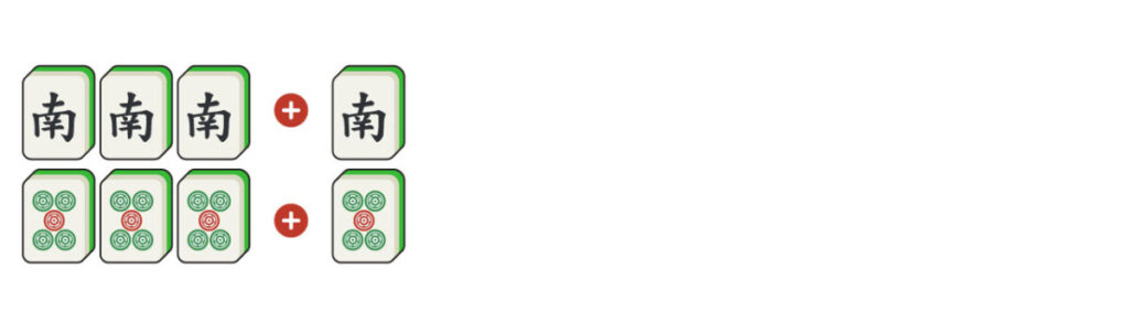 다이밍깡은 손패로 같은 패 3개, 즉 안커를 가지고 있는 상태에서 타가가 나머지 하나의 패를 버린 경우 이 패를 가져와 깡쯔를 만드는 것입니다. 패가 4개지만 기본적으로 밍커로 취급하면 됩니다.