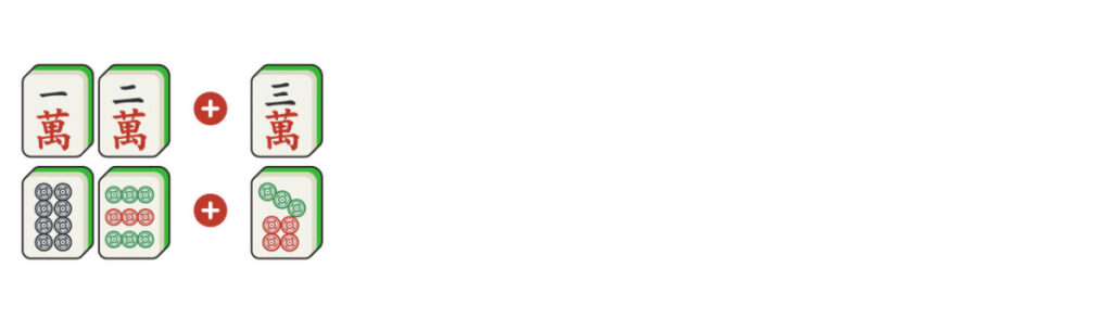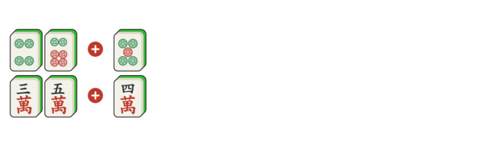 이것이 한국마작에서 가장 만들기 쉬운 역이면서 동시에 상당히 높은 확률로 화료할 수 있는 방법입니다. 멘젠이 아닌 경우 쯔모는 역이 아니기 때문에 1점을 얻을 수 없습니다.